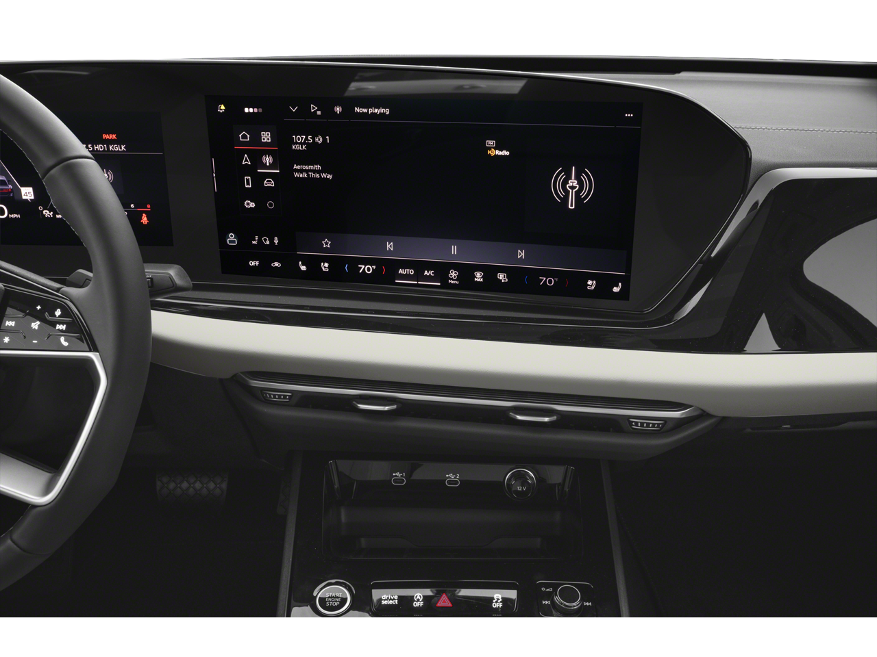 - Radio: Audi MMI Navigation Plus -inc: Audi connect CARE (limited time subscription), Audi connect NAV & PLUS (limited time subscription, acceptance of terms required), Audi smartphone interface (wireless Apple CarPlay and Android Auto), Audi sound system, SiriusXM w/360L (3-month trial) and MMI touch display w/14.5" center screen
