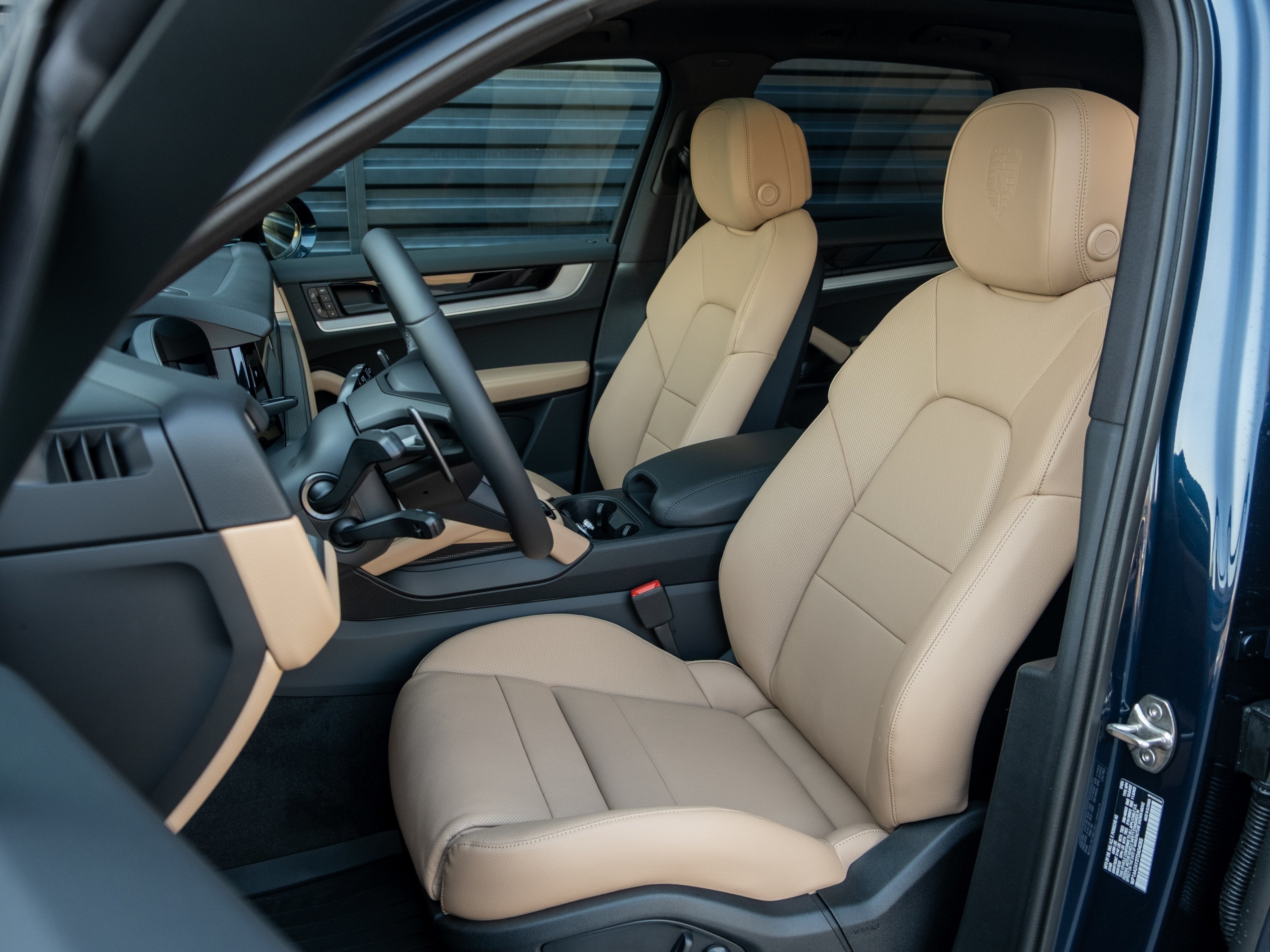 2026 Porsche Cayenne Black/Mojave Beige w/Embossed Leather Seat Trim with Two-Tone Interior.