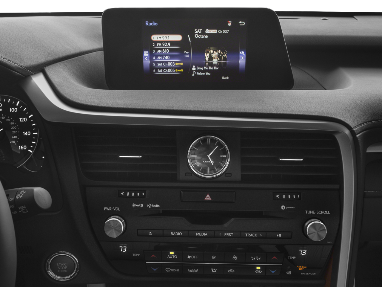 - Radio: AM/FM/CD Lexus Display Audio -inc: 8-inch screen, 9-speaker premium audio system, Bluetooth® hands free phone and automatic phonebook download capabilities, Scout GPS link app-based turn-by-turn directions, voice recognition, Cache Radio, ability to pause live AM/FM radio and HD Radio, traffic and weather data provided via HD Radio (free to all users while in HD Radio range), basic traffic map, weather forecast, Siri Eyes Free and Electro Multi Vision (EMV) display